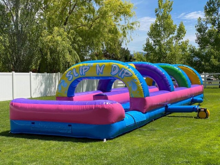 Our 37Ft Slip-n-Dip is the perfect addition or centerpiece for any Florida gathering. With dual lanes, this exciting Slip N Dip guarantees a thrilling experience! Guests will be racing and splashing all afternoon on this exhilarating ride!